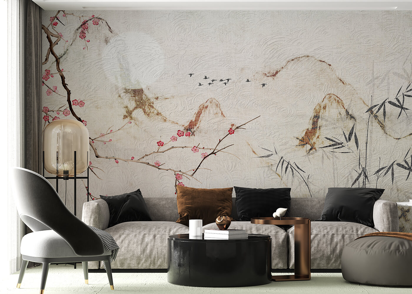 The SHOJI Collection draws inspiration from the traditional Japanese shoji screens—translucent sliding panels that softly filter light and define space with grace and minimalism. These elements are more than architectural details; they reflect a philosophy where simplicity, harmony, and the interplay of light and shadow create a deeper sense of beauty. From the gentle dance of cherry blossoms to the whispers of bamboo groves and the ethereal silhouettes of misty pagodas, SHOJI transforms walls into stories of balance and serenity. Rooted in the visual poetry of Chinese and Japanese art, this collection is not just a celebration of design, but an invitation to live with intention — where every surface becomes a quiet echo of nature and the soul.